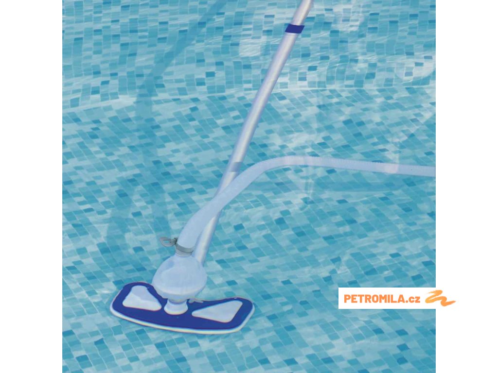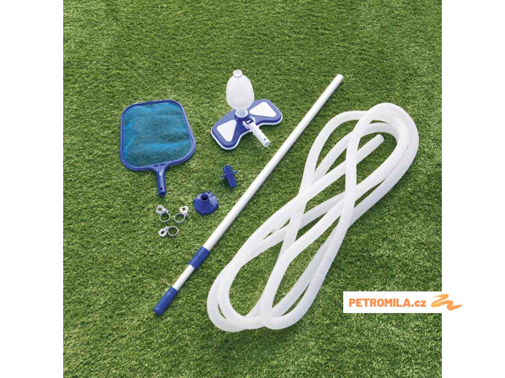 Jednoduše ji připojte k filtračnímu čerpadlu a hned máte v ruce výkonný a lehký vysavač s extra dlouhou hadicí pro snadné čištění bazénových stěn a dna. Součástí sady je dále síťka bazénového skimmeru pro sesbírání listí z hladiny, o řasy a další nečistoty se postará vysavač. Extra dlouhá hliníková tyč umožňuje skimmerem a vysavačem vyčistit i těžko přístupné části nadzemních bazénů. Nečistoty jsou shromažďované v odnímatelném a opakovaně použitelném sáčku na odpad.