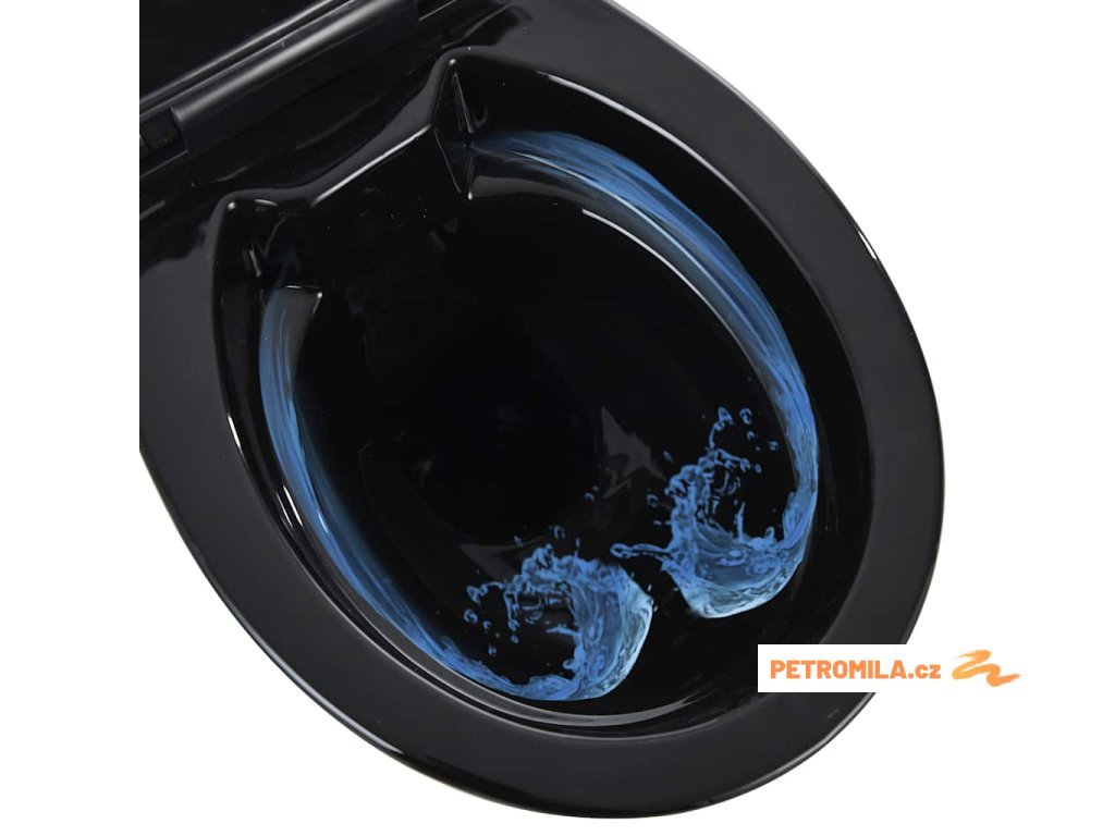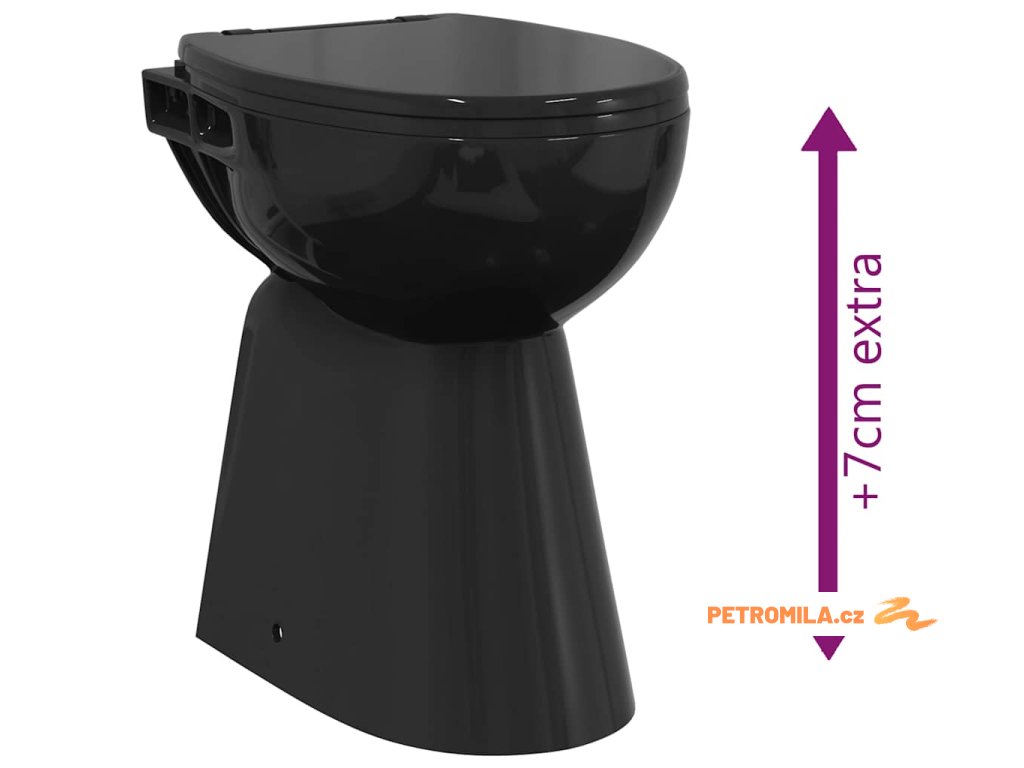 Bezrámová toaleta, 7 cm navýšená výška, pomalé zavírání, keramická černá