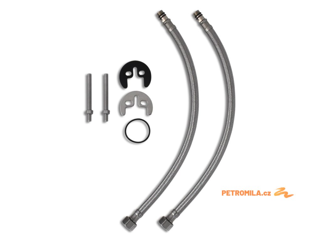 Balení obsahuje 2 baterie, 4 nerezové flexibilní hadice a montážní příslušenství.