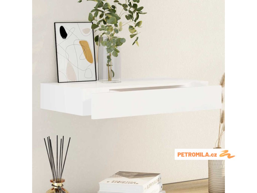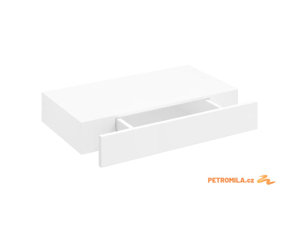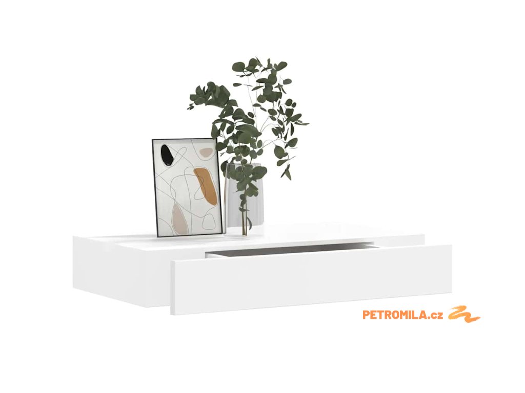 Bílá nástěnná plovoucí MDF police s 1 zásuvkou na knihy a DVD
