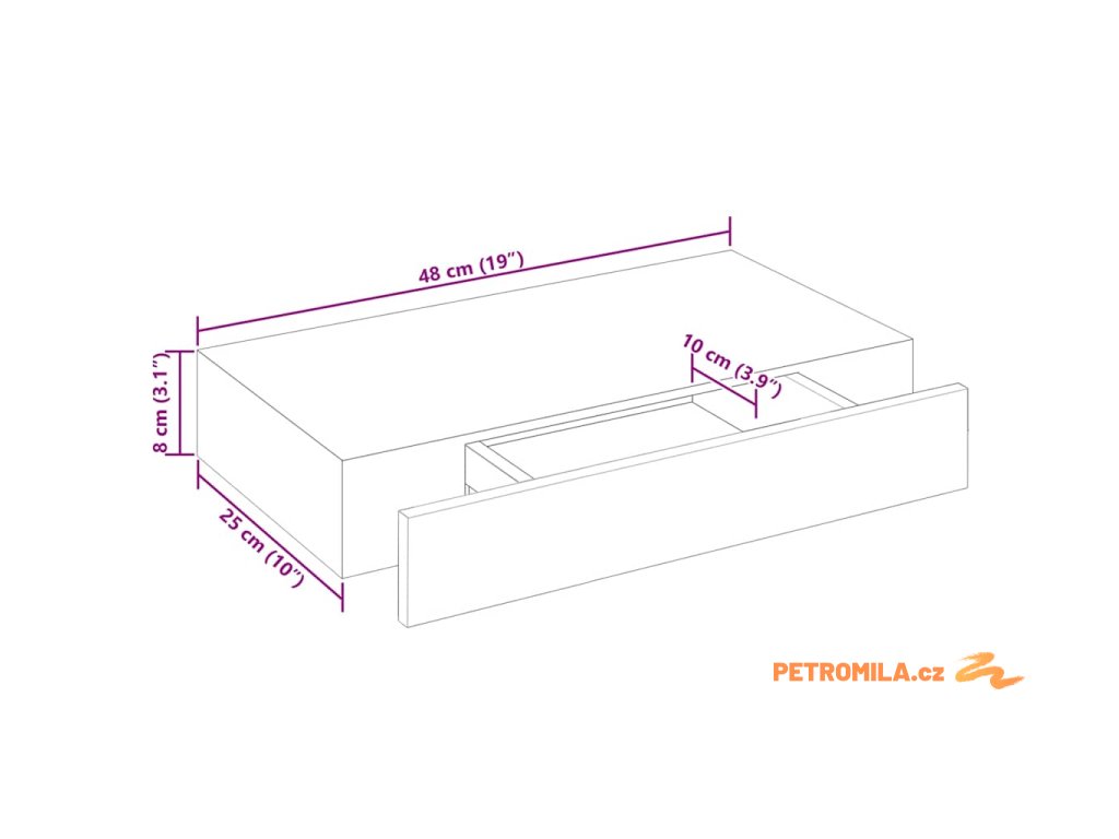 - Rozměry police: 48 x 25 x 8 cm (Š x H x V)