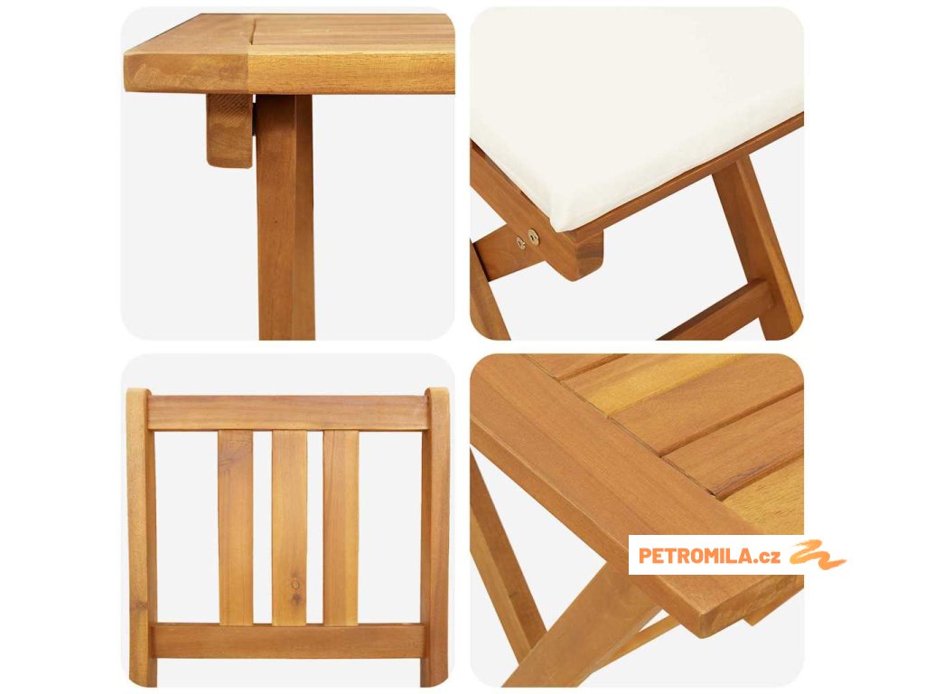 Bistro souprava je stylová a praktická volba pro venkovní nábytek, ideální pro zahrady a terasy. Vyrobená z odolného akáciového dřeva, vypadá skvěle a poskytuje pohodlné sezení pro stolování nebo jen relaxaci venku. Je kompaktní a snadno se skládá, když ji zrovna nepotřebujete, takže skvěle vyhovuje lidem s omezeným venkovním prostorem.