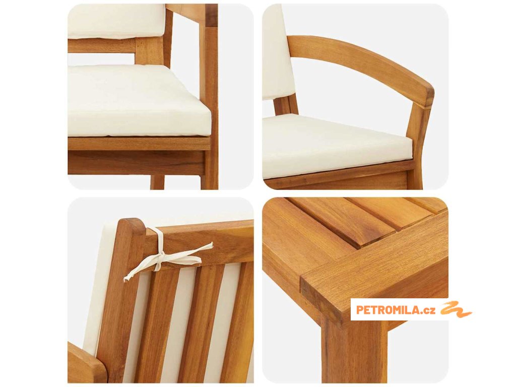 - Masivní akáciové dřevo: Bistro souprava je většinou z masivního akáciového dřeva. Tohle dřevo bylo vybrané pro svou sílu a odolnost vůči počasí, a jeho přirozená krása dodává každému prostoru šmrnc. Její robustní konstrukce a pěkná struktura dělají z ní skvělou volbu pro nábytek, který má něco vydržet.
