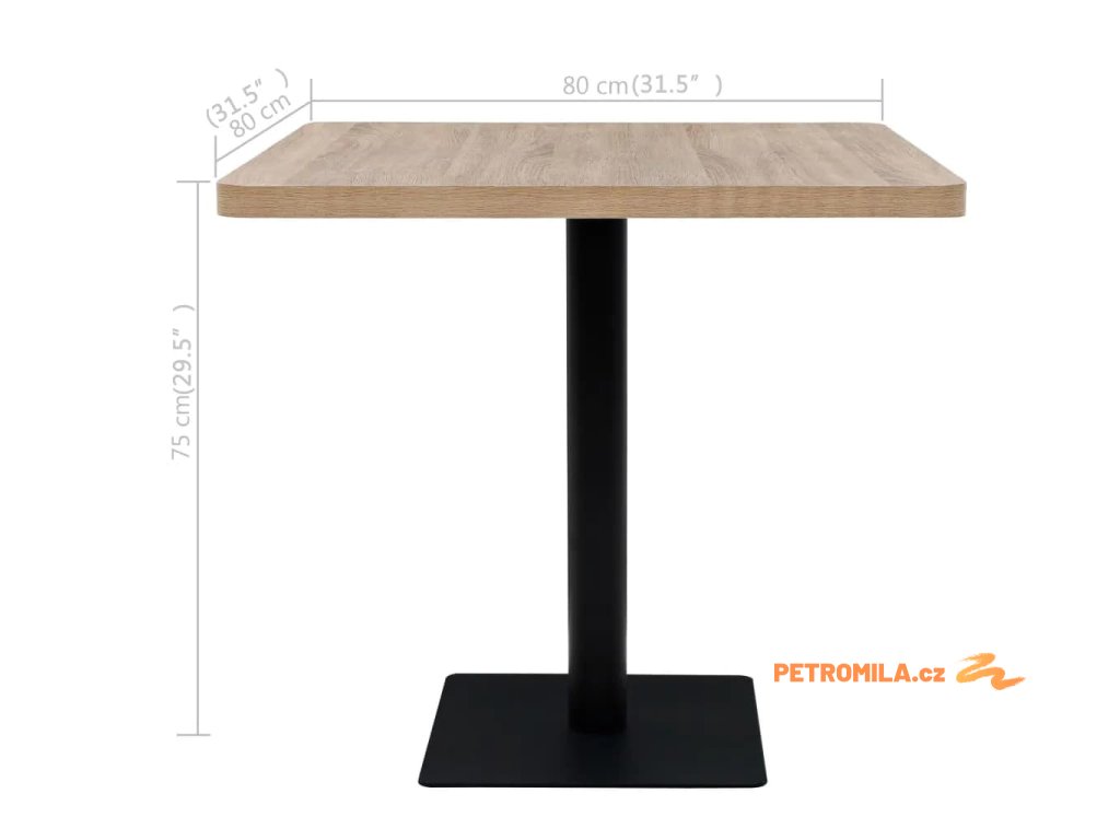 Horní deska stolu je vyrobena z MDF s povrchovou zrnitou úpravou a je podepřena ocelovou nohou a základnou. Snadno se čistí pouze vlhkým hadříkem. Použijte jej jako samotný kus ve svém interiéru, restauraci, kavárně nebo baru.