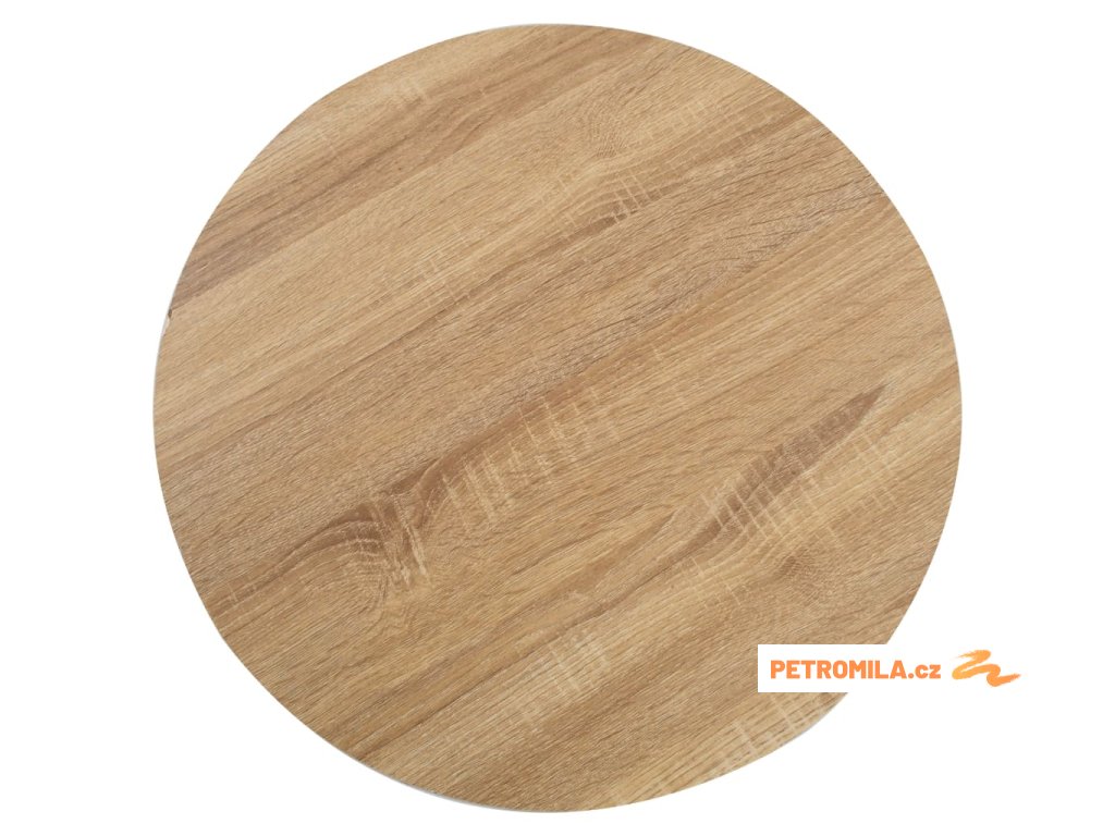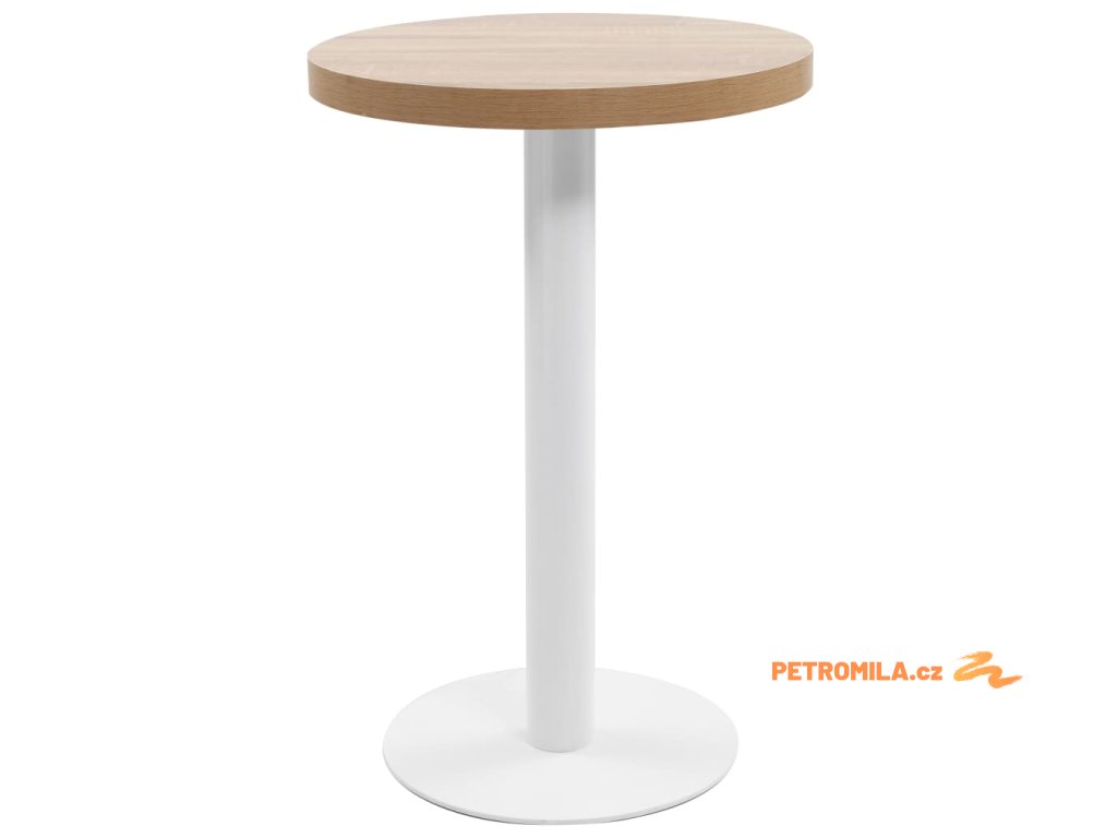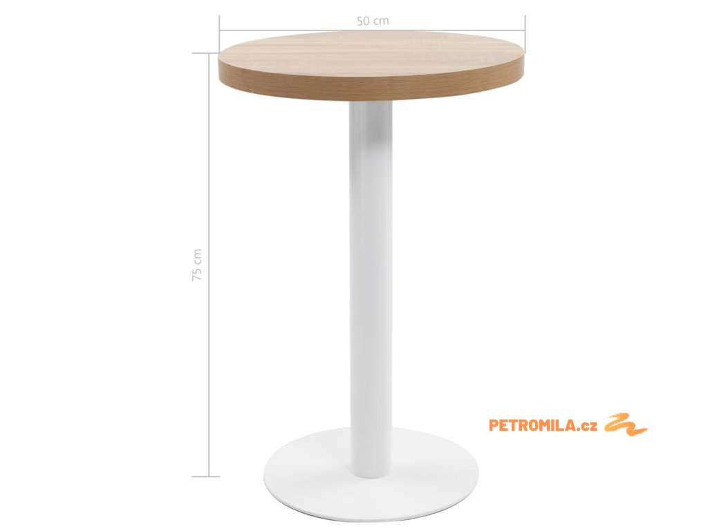 Horní deska stolu je vyrobená z MDF se vzorem dřevěné kresby a podpírá ji ocelová noha se základnou. Snadno ji očistíte vlhkým hadříkem. Stolek skvěle využijete jako samostatný kus nábytku ve svém bydlení, ale i v restauraci, kavárně nebo baru.