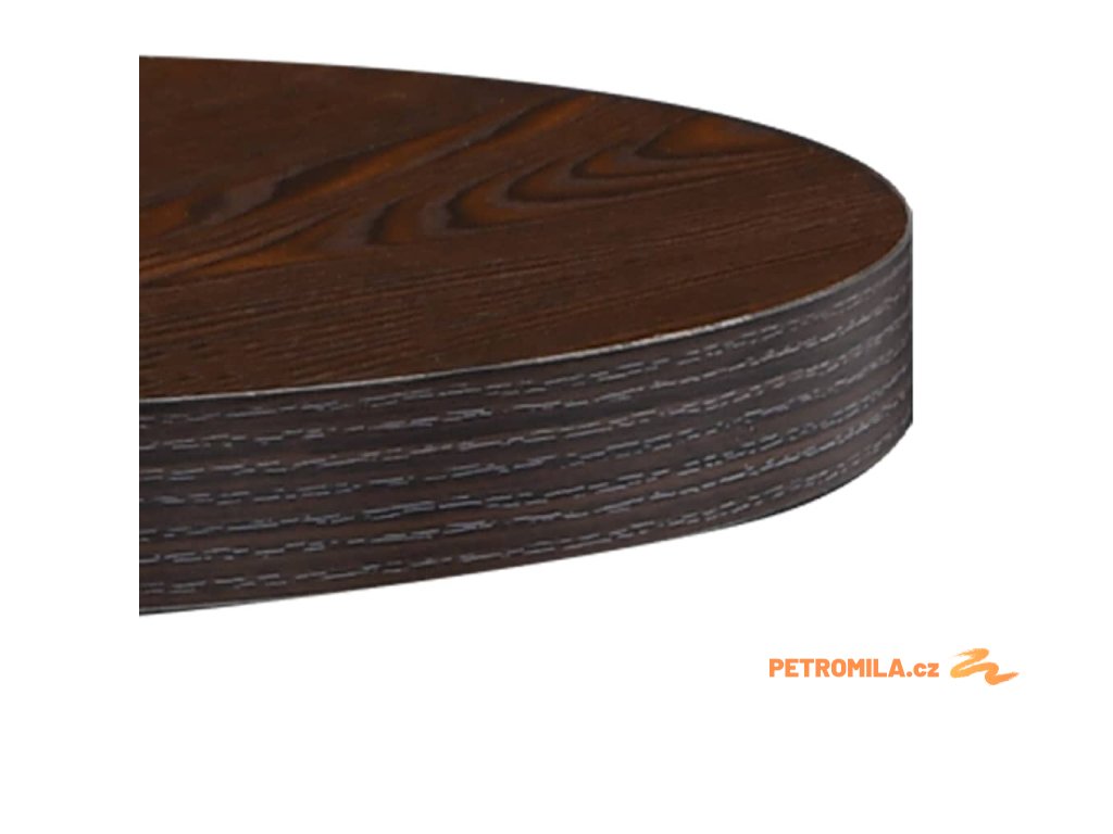 Horní deska stolu je vyrobená z MDF se vzorem dřevěné kresby a podpírá ji ocelová noha se základnou. Snadno ji očistíte vlhkým hadříkem. Stolek skvěle využijete jako samostatný kus nábytku ve svém bydlení, ale i v restauraci, kavárně nebo baru.