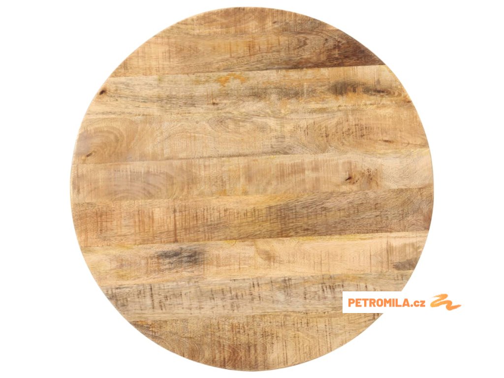 Stolní deska je ručně vyrobená z hrubého mangovníkového dřeva s přírodním povrchem. Jedná se o tropické tvrdé dřevo, které dokáže unést značnou váhu. Skvěle také odolává opotřebení a působení času, takže je stabilní a dlouho vydrží. Černá základna z práškově lakovaného železa zajišťuje výtečnou rovnováhu a pevnost. Tento jídelní stůl vám rovněž poslouží k odkládání nápojů či jiných věcí, které chcete mít vždy po ruce.