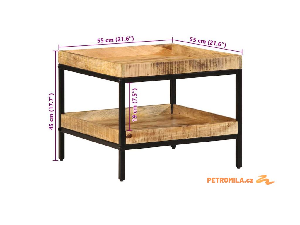 Boční stůl s policí Hnědá 55 x 55 x 45 cm Masivní mangové dřevo