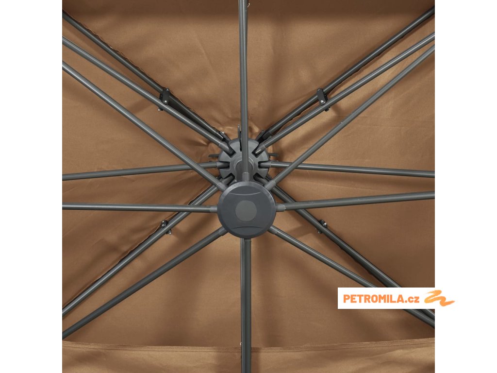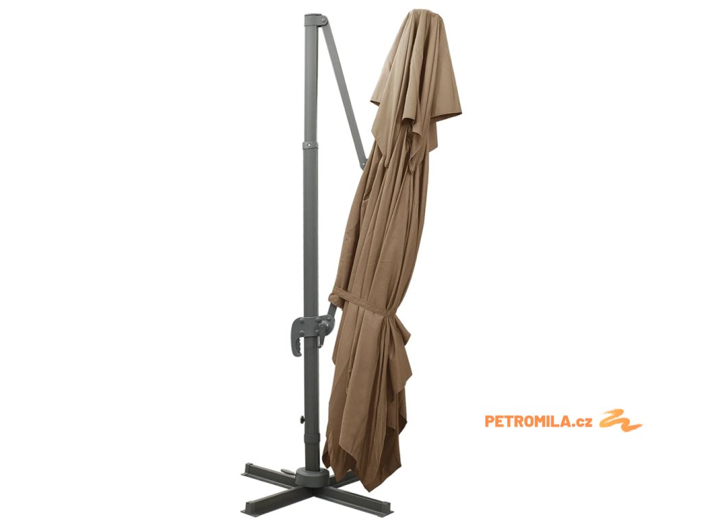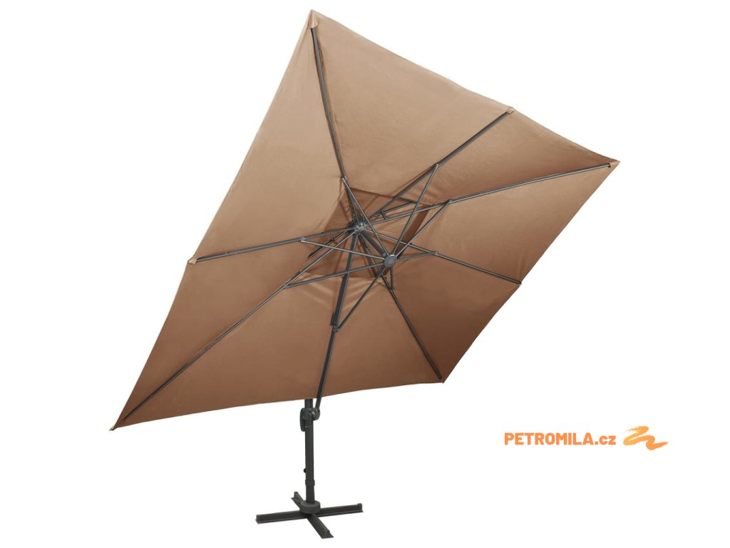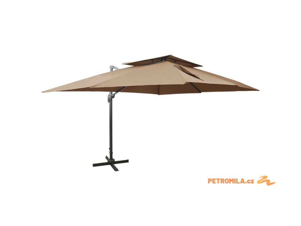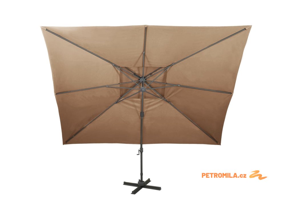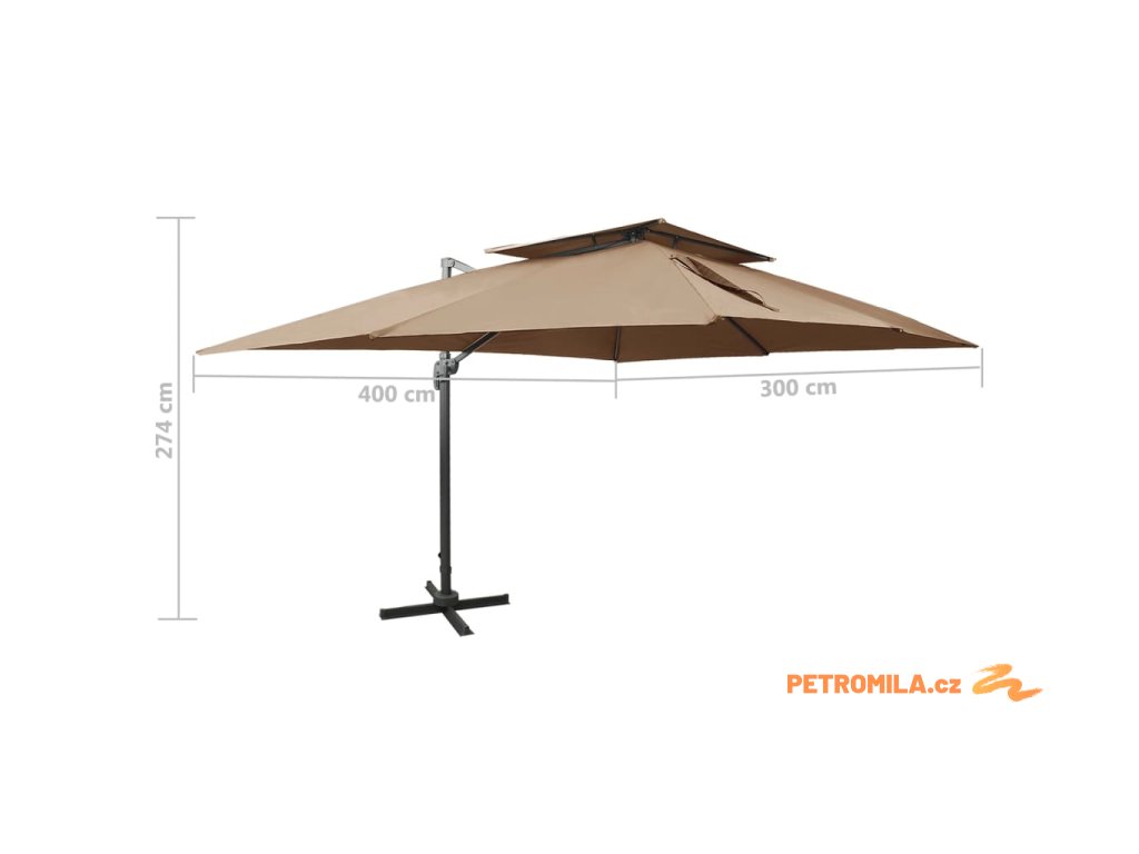 Boční zahradní slunečník s dvojitou stříškou taupe 400 x 300 cm