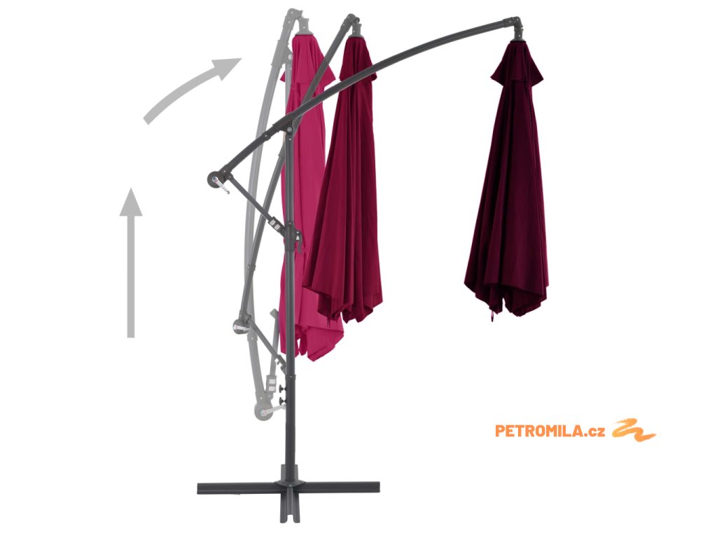 Stříška slunečníku je vyrobena z polyesterové tkaniny, která nepropouští škodlivé UV záření a nevybledne, a poskytne vám optimální ochranu před sluncem. Navíc se snadno čistí. Slunečník je vybavený pevnou křížovou základnou pro větší stabilitu. Exkluzivní konstrukce tohoto slunečníku vám umožní naklonit ho tak, aby blokoval slunce, které klesá za obzor. Silná kovová tyč se 6 odolnými žebry zajišťuje, že se slunečník nehýbe a hodně toho vydrží. Tento zahradní slunečník disponuje klikovým mechanismem, což znamená, že se snadno otevírá i zavírá.