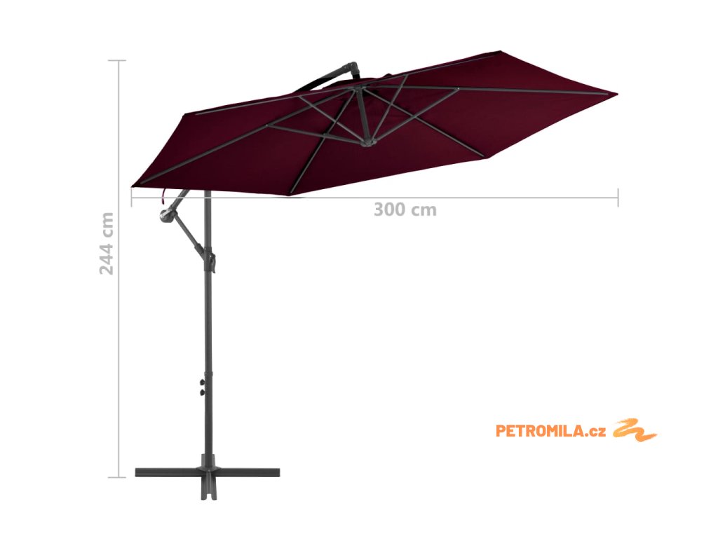 Boční zahradní slunečník s hliníkovou tyčí bordó 300 cm
