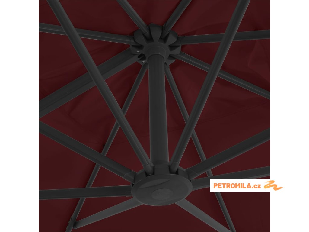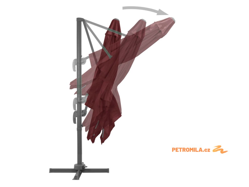 Boční zahradní slunečník s hliníkovou tyčí bordó 400 x 300 cm