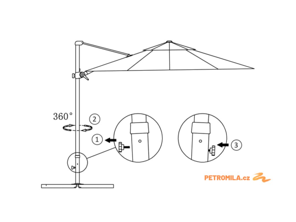 Vezměte prosím na vědomí: Pokud bude slunečník vystavený silnému dešti, doporučujeme ho ošetřit impregnací.
