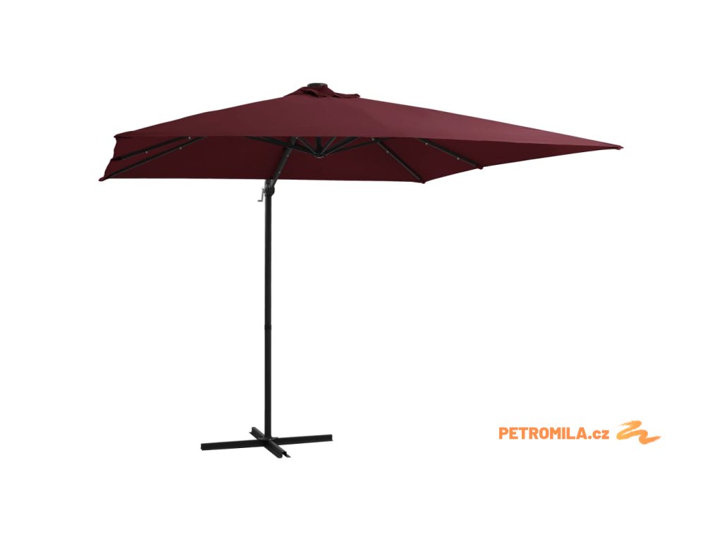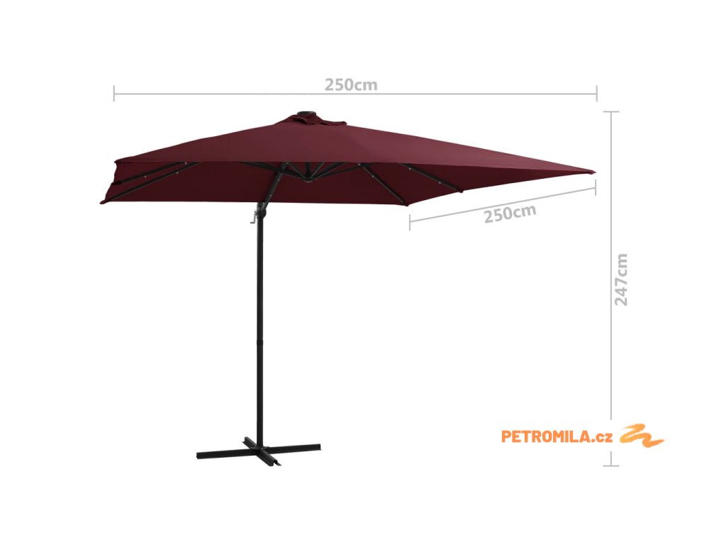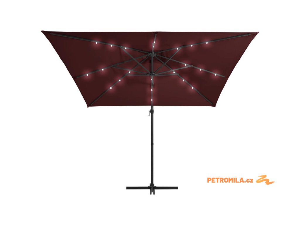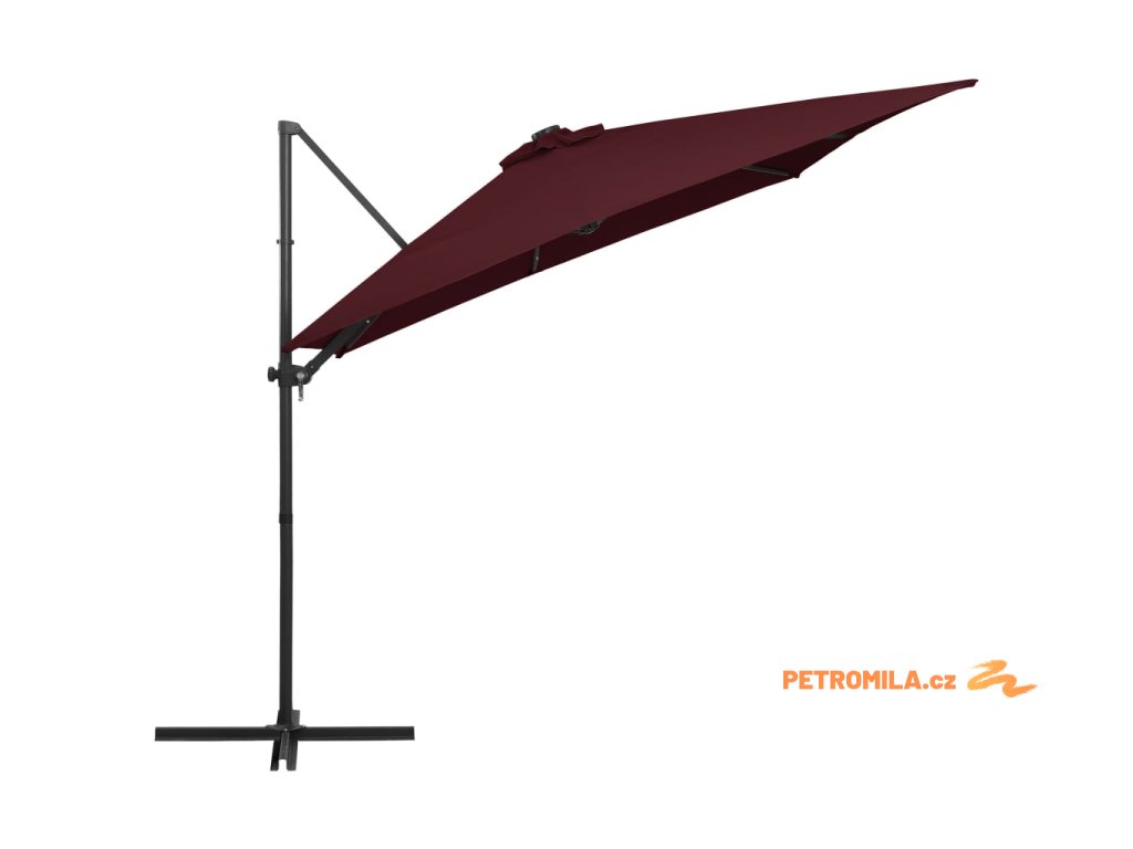 Boční zahradní slunečník s LED osvětlením bordó 250 x 250 cm