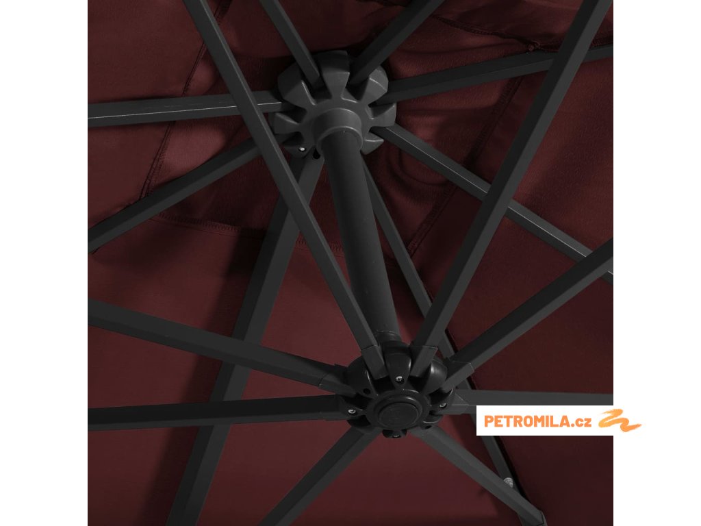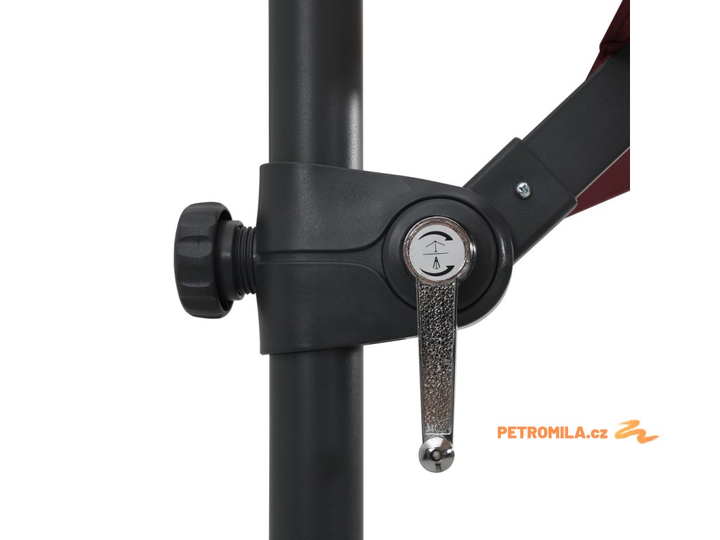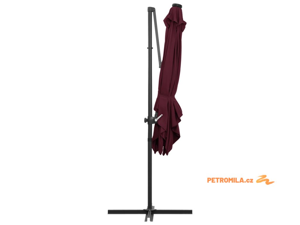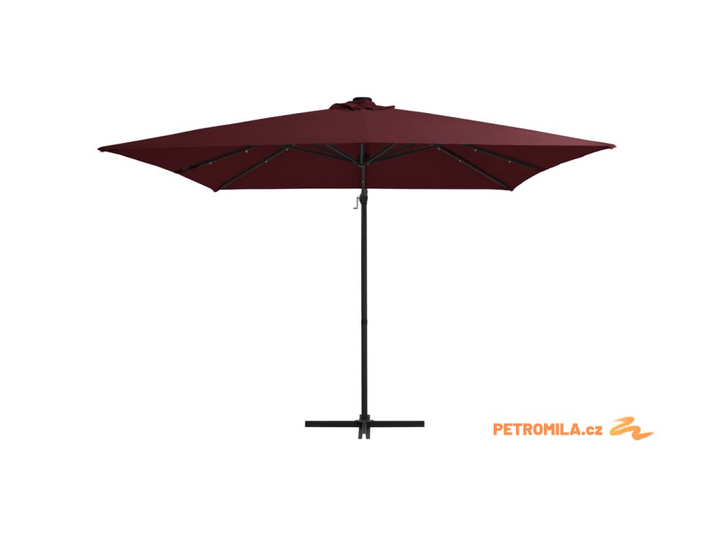 Boční zahradní slunečník s LED osvětlením bordó 250 x 250 cm