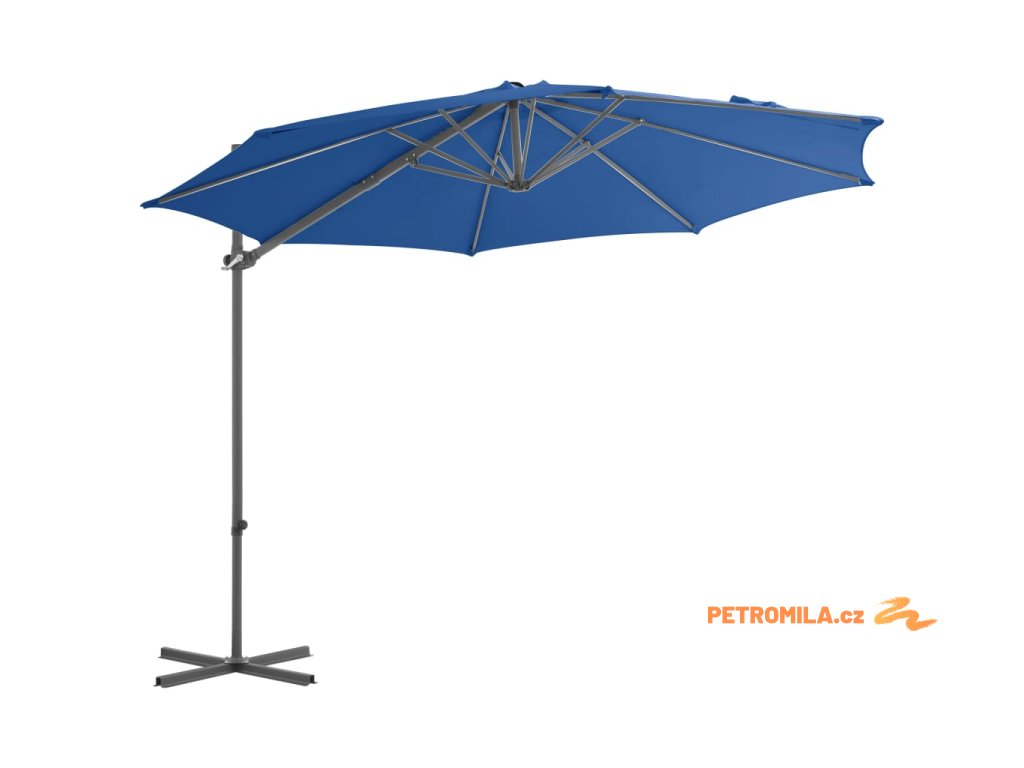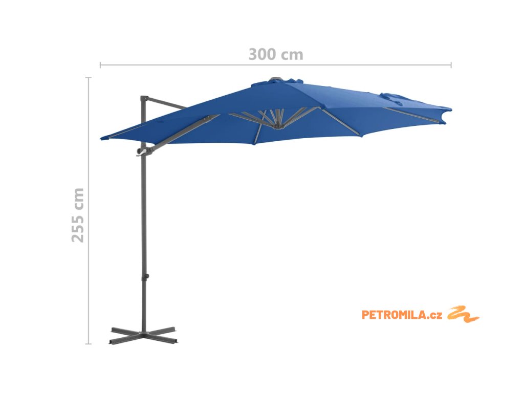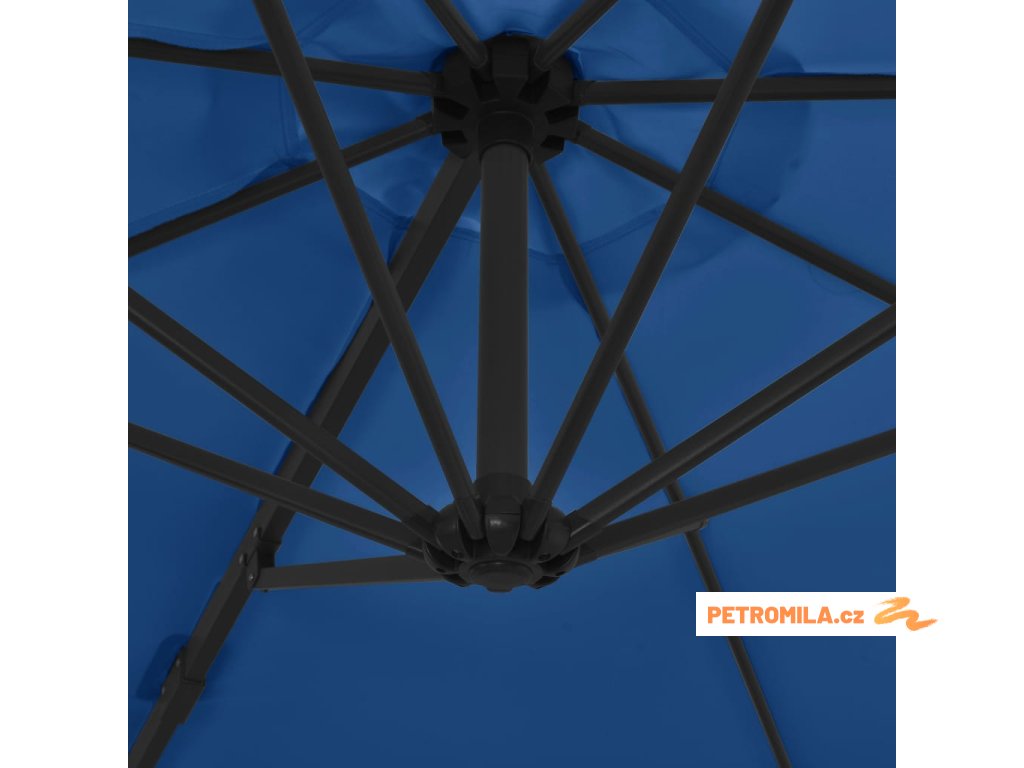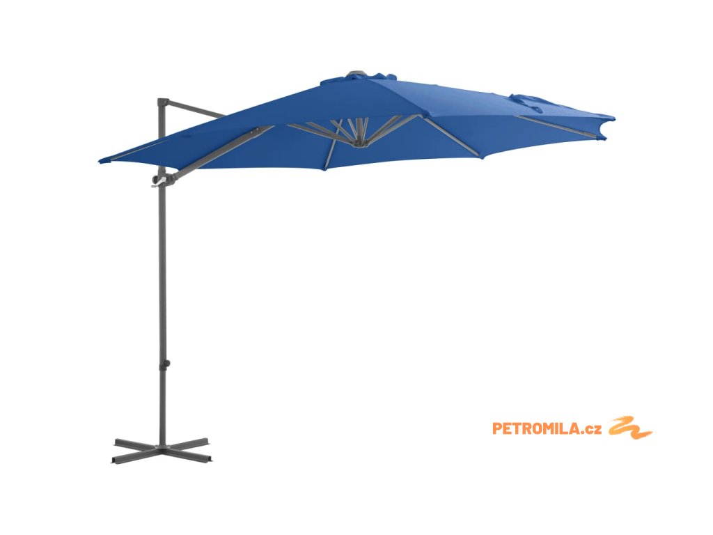 Boční zahradní slunečník s ocelovou tyčí azurový 250 x 250 cm