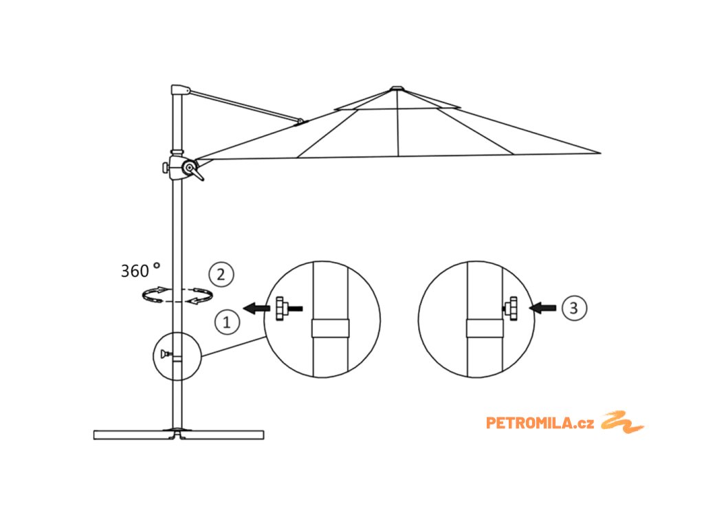 Upozornění: Pokud bude slunečník vystavený silnému dešti, doporučujeme ho ošetřit impregnací.