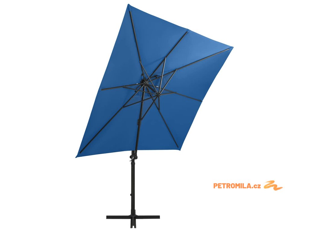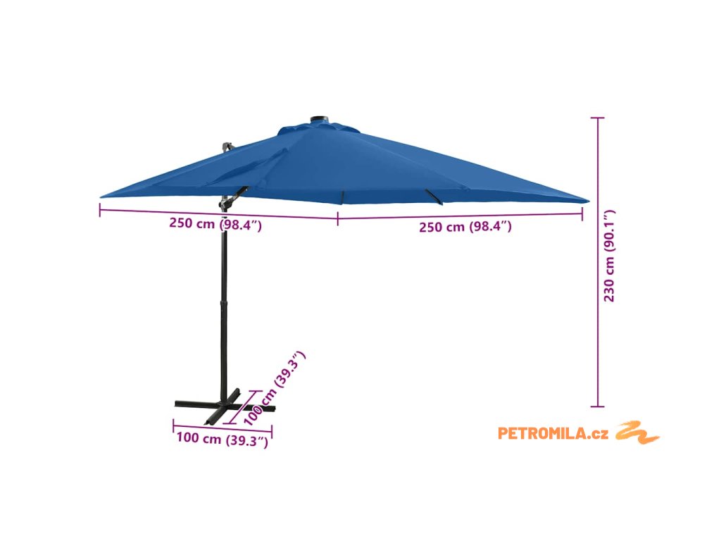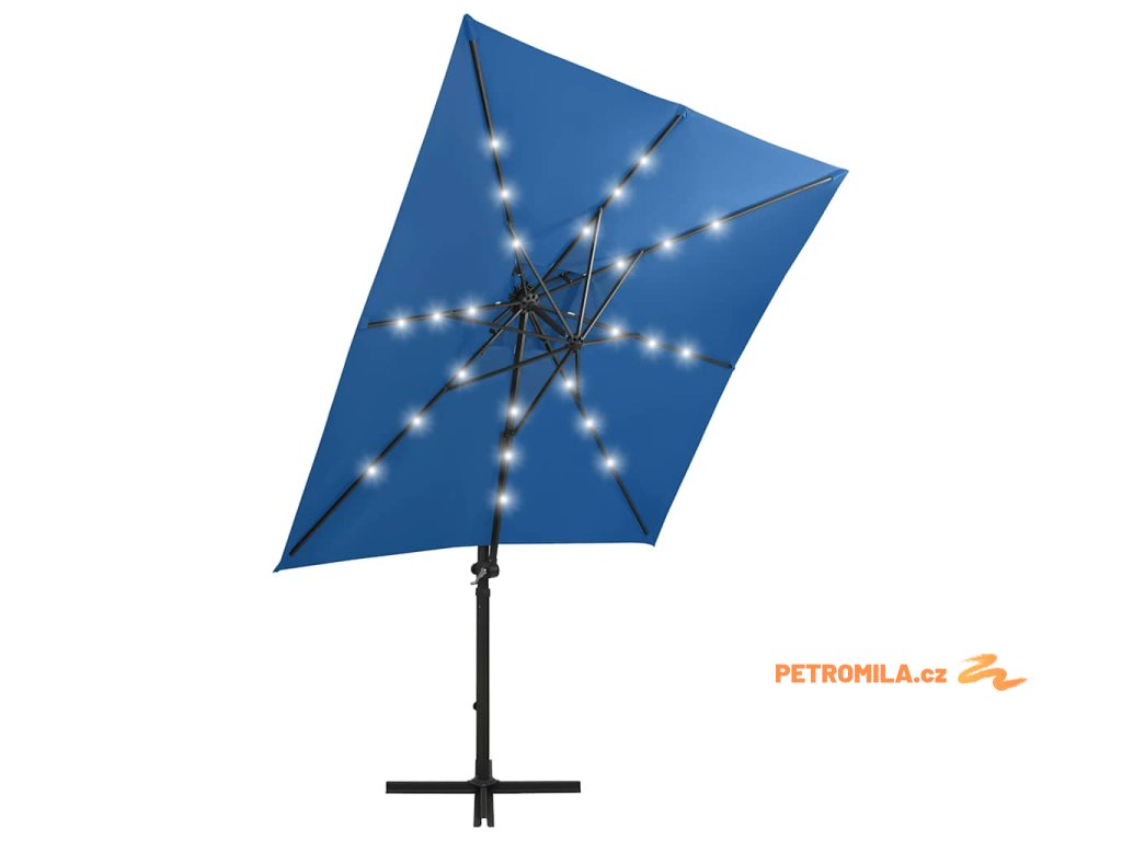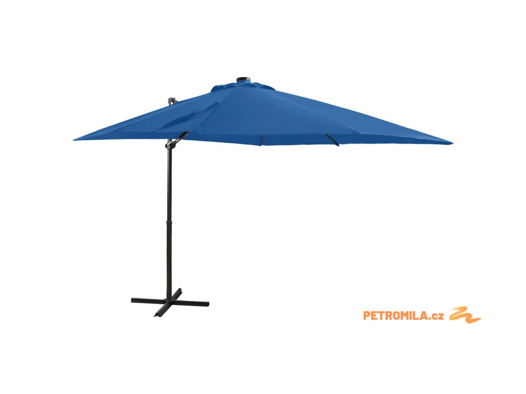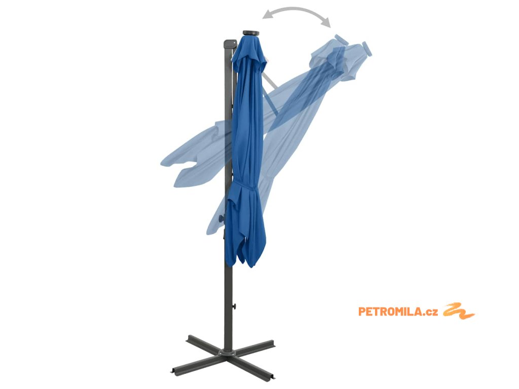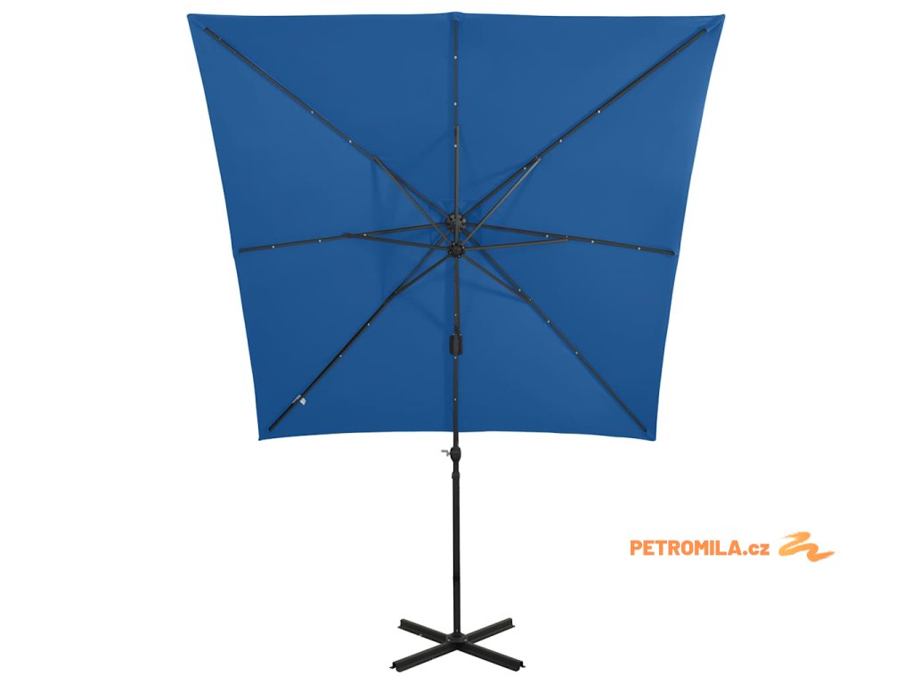 Boční zahradní slunečník s tyčí a LED azurově modrý 250 cm