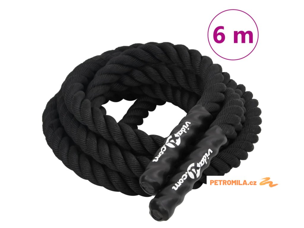 - Odolný materiál: Třípramenné kroucené bojové lano je vyrobeno z odolného polyesterového vlákna s vysokou pevností v tahu, které zabraňuje zlomení a třepení.