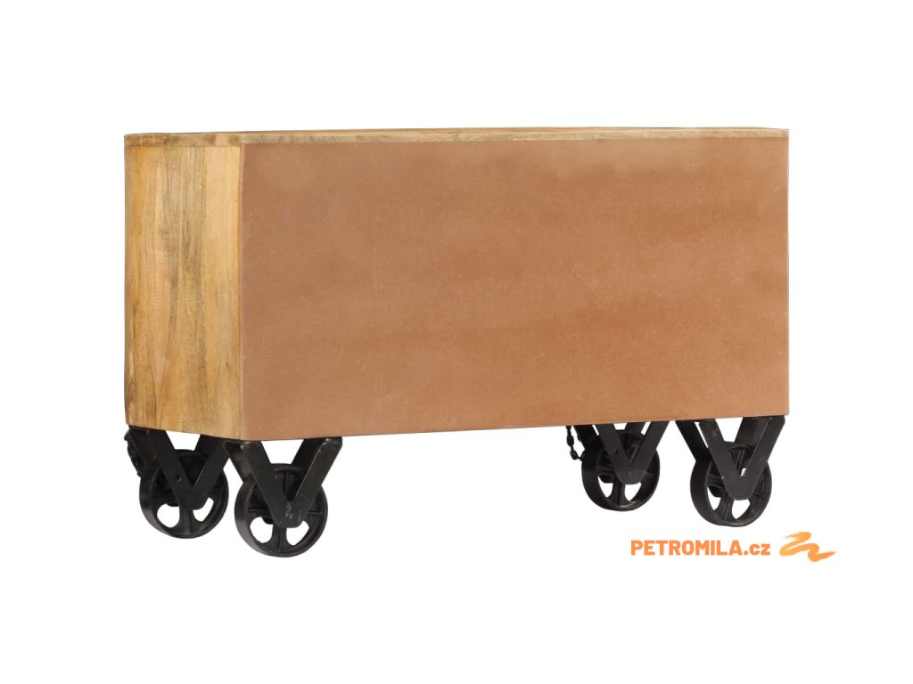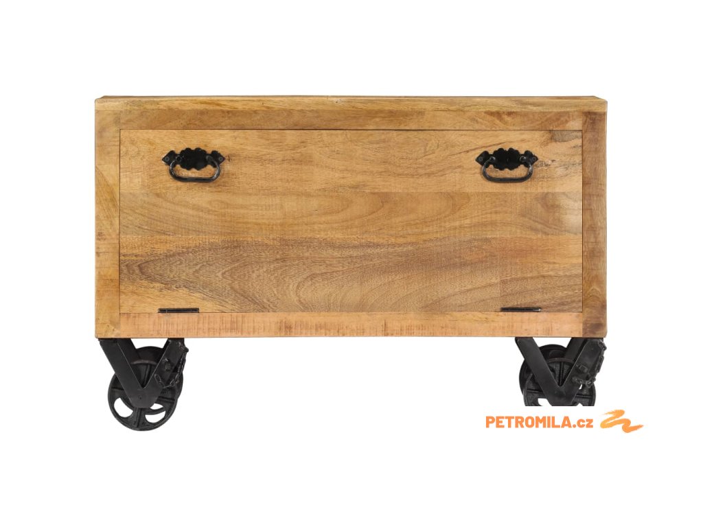 Botník je vyrobený z masivního mangovníku, což je tvrdé dřevo s hustou texturou. Hrubé mangovníkové dřevo je nejen schopné unést značnou váhu, ale zároveň také výborně odolává opotřebení a působení času. Řemeslné zpracování a elegantní kresba dřeva navíc činí každý kus nábytku zcela výjimečným a lehce odlišným od ostatních. Skříňka disponuje 2 přihrádkami ukrytými za dvířky, poskytne vám tedy spoustu místa, kam si můžete uložit své boty. K tomu je posazena na 4 kolečkách, takže ji lze snadno přesouvat z místa na místo.