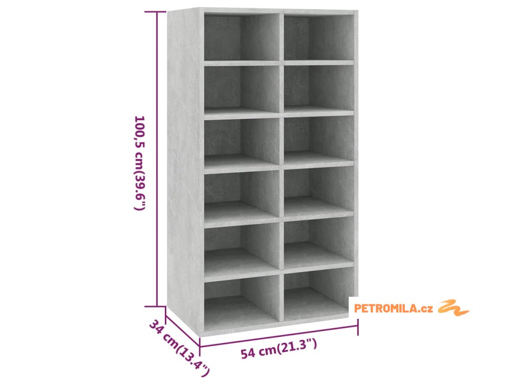 Botník betonově šedý 54 x 34 x 100,5 kompozitní dřevo