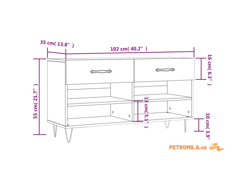 - Rozměry: 102 x 35 x 55 cm (Š x H x V)