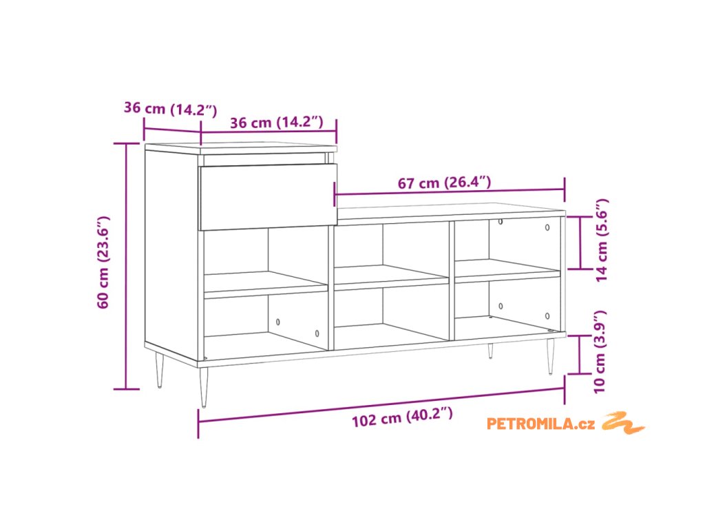 - Dostatek úložného prostoru: Botník má 1 zásuvku a 6 přihrádek, poskytne vám tedy dostatek prostoru pro přehledné uspořádání vašich bot a jiných věcí.