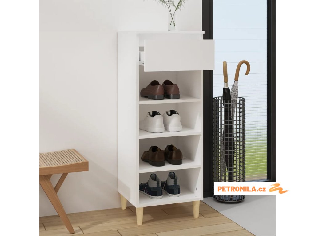 - Stabilní dřevěné nohy: Dřevěné nožičky dodávají této skříňce na boty přirozený a příjemný vzhled a zároveň zajišťují stabilitu. Skvěle se hodí do jakéhokoli interiéru.