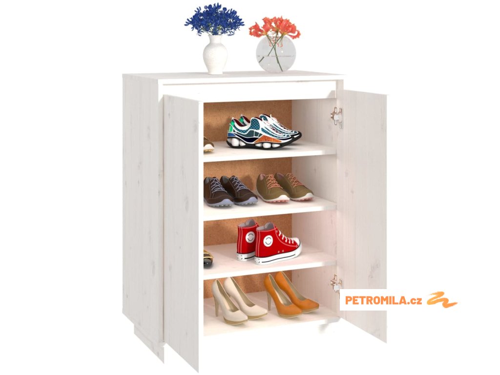Úložná skříňka je zhotovena z masivního borového dřeva, je tedy bytelná a stabilní. Regál na boty vám poskytne spoustu místa pro přehledné uložení vašich bot, kde je budete mít pěkně po ruce. Stabilní horní deska vám navíc poslouží k vystavení dekorativních předmětů, jako jsou fotorámečky nebo pokojové rostliny.