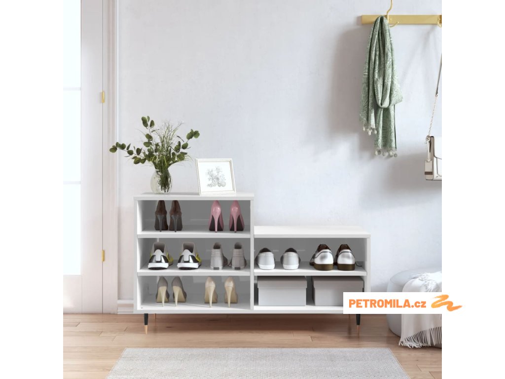 Botník bílý s vysokým leskem 102x36x60 cm kompozitní dřevo