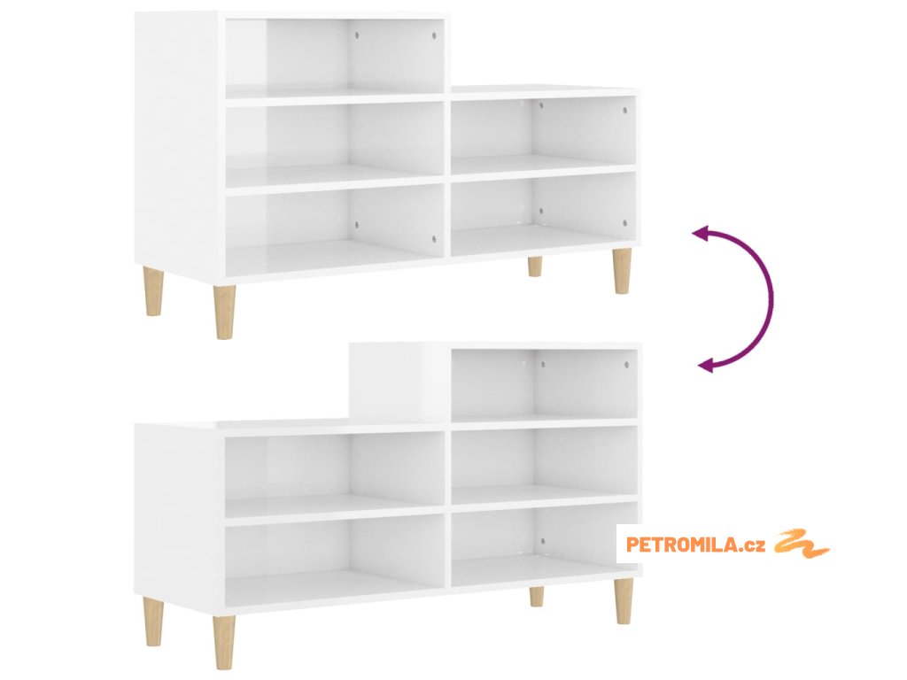 Botník bílý s vysokým leskem 102x36x60 cm kompozitní dřevo