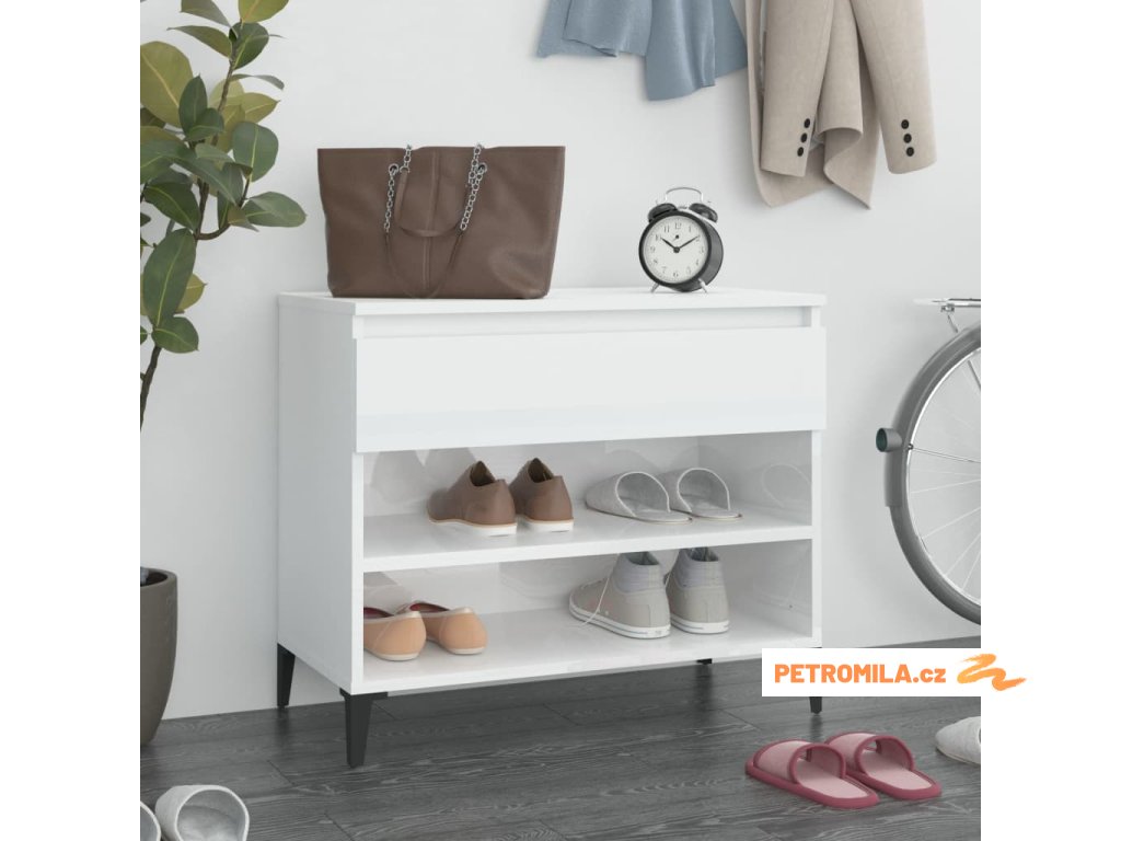 Botník bílý s vysokým leskem 70x36x60 cm kompozitní dřevo