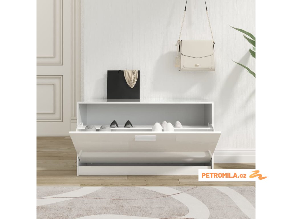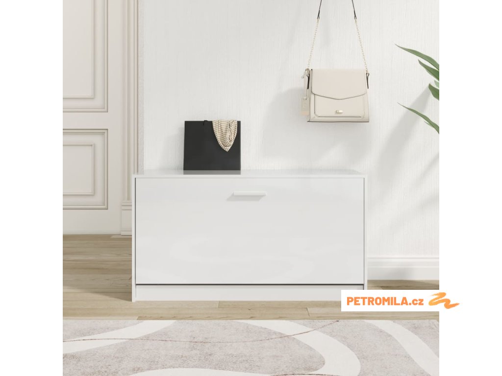 Botník bílý s vysokým leskem 80 x 24 x 45 cm, z umělého dřeva
