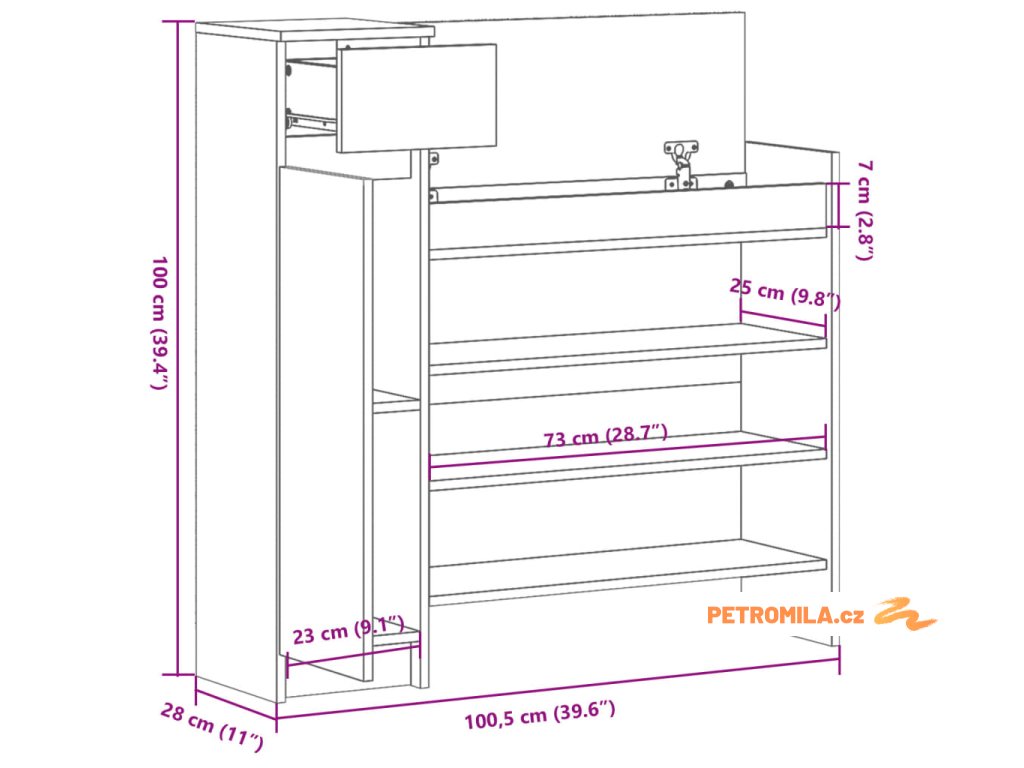 - Rozměry: 100,5 x 28 x 100 cm (Š x H x V)