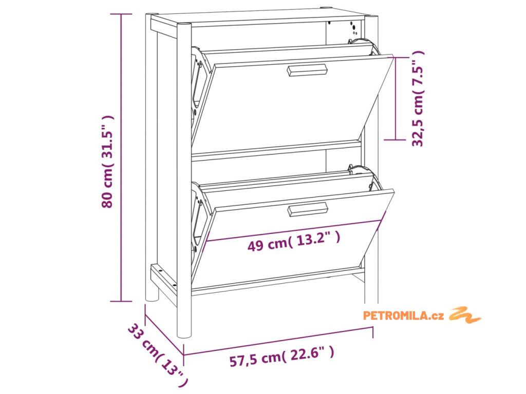 - Rozměry: 57,5 x 33 x 80 cm (Š x H x V)