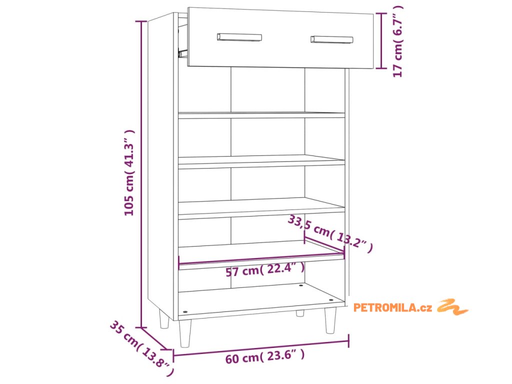 - Dostatek úložného prostoru: Botník má 5 přihrádek a 1 zásuvku, které poskytují dostatek prostoru pro přehledné uspořádání bot. S tímto praktickým botníkem už se nebudete muset zlobit, že máte boty rozházené po celé chodbě.
