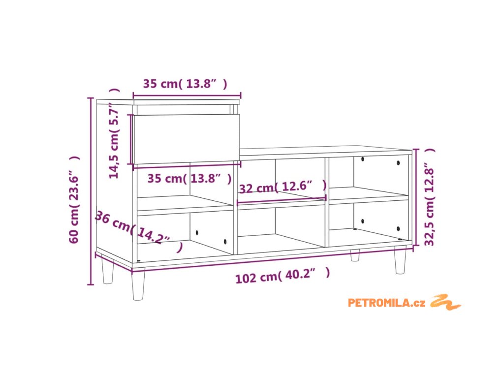 Botník dub sonoma 102 x 36 x 60 cm kompozitní dřevo