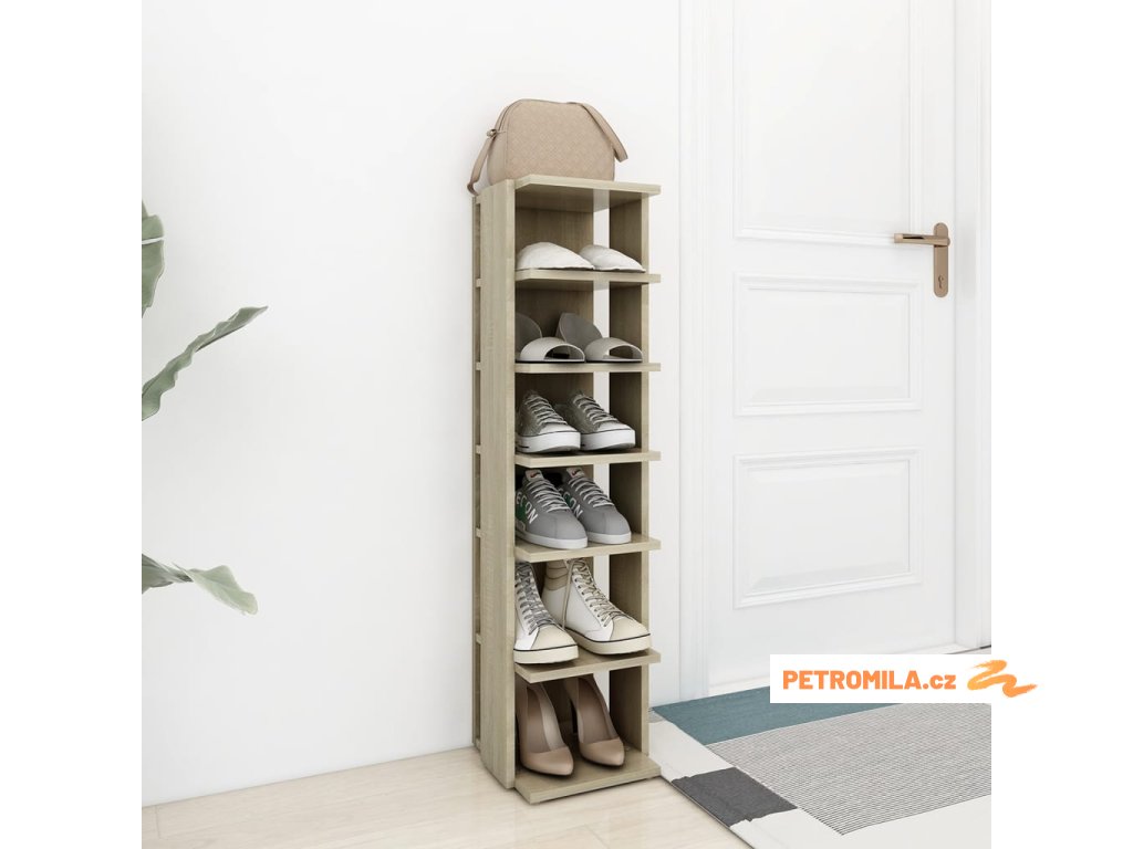Botník je vyroben z kvalitního kompozitního dřeva, které mu dodává nejen vytříbený vzhled, ale i stabilitu a odolnost. Tento botník zabírá jen malý prostor a je ideální do úzkého rohu, jako je například prostor pod schody. Obsahuje 6 polic a pojme spoustu bot.