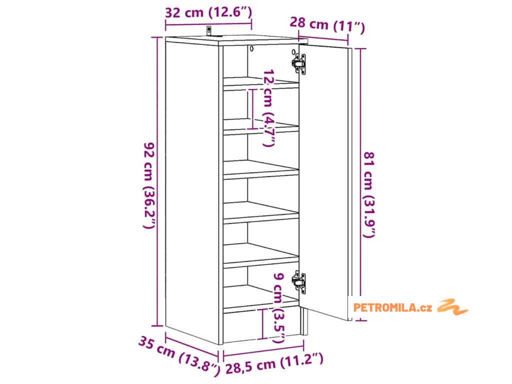 Tento botník je odolný a robustní s dlouhou životnost. Jeho jednoduchý design snadno zapadne do vašeho stávajícího obytného prostoru. Regál na boty má 6 polic, které poskytují dostatek prostoru pro přehledné uložení bot. Dvířka, která lze otevřít vlevo nebo vpravo, chrání vaše boty před prachem a zároveň nebudou na očích. Navíc se snadno čistí vlhkým hadříkem.