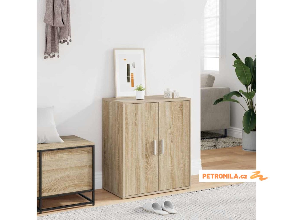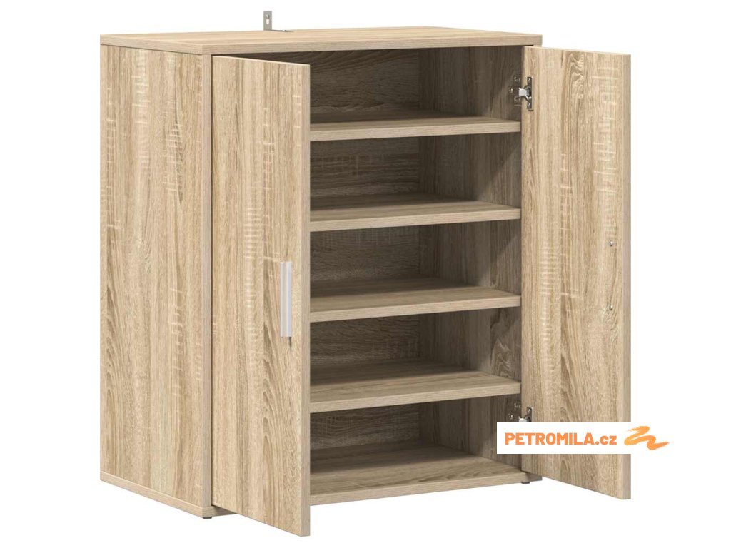 Tato skříňka do předsíně je vyrobená z kompozitního dřeva, je tedy nesmírně odolná a robustní. Uvnitř se nachází 5 poliček, které vám poskytnou spoustu prostoru pro přehledné ukládání bot. Jelikož je skříň opatřená 2 dvířky, vaše boty jsou dobře chráněné před prachem a zároveň je nemáte na očích. Navíc ji můžete umístit na zem nebo připevnit na stěnu v závislosti na vašich potřebách.