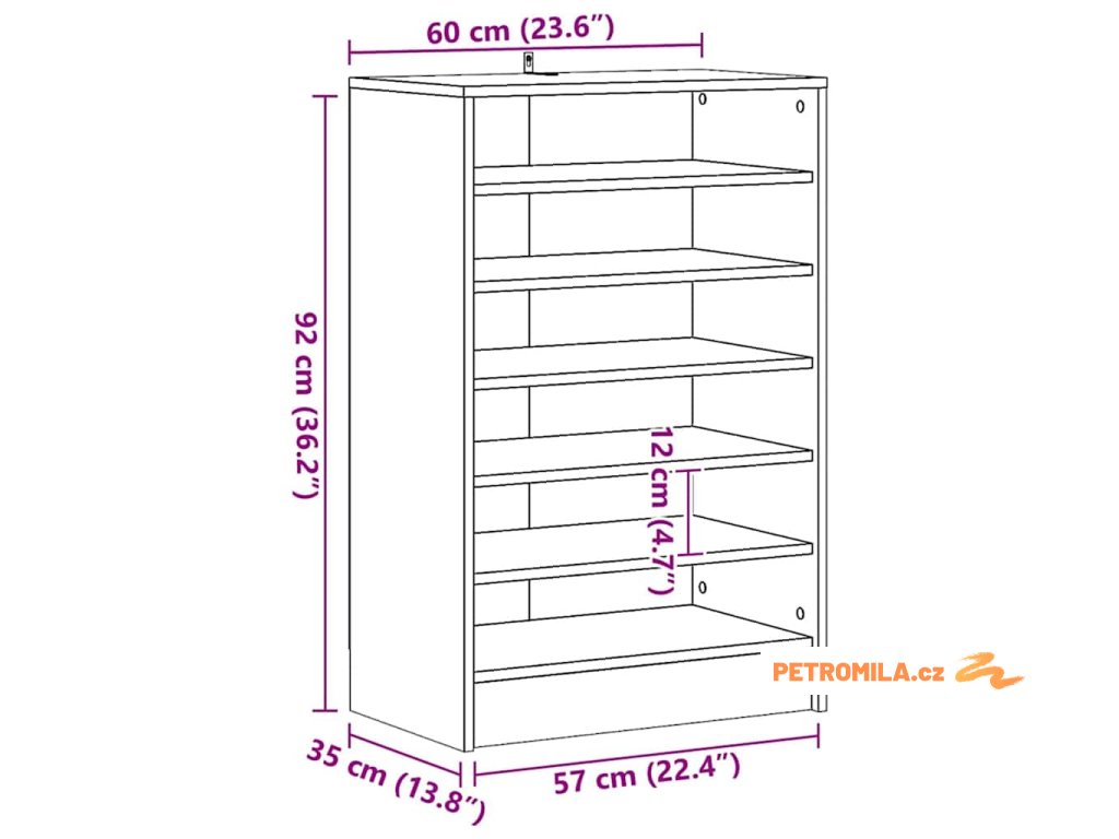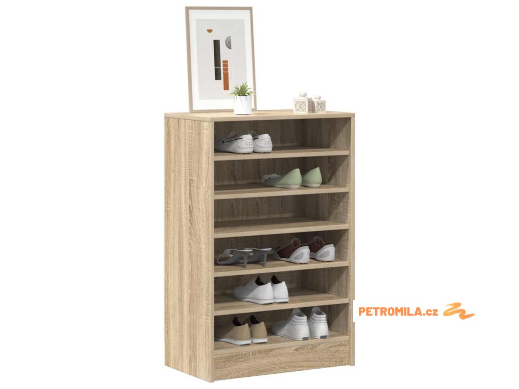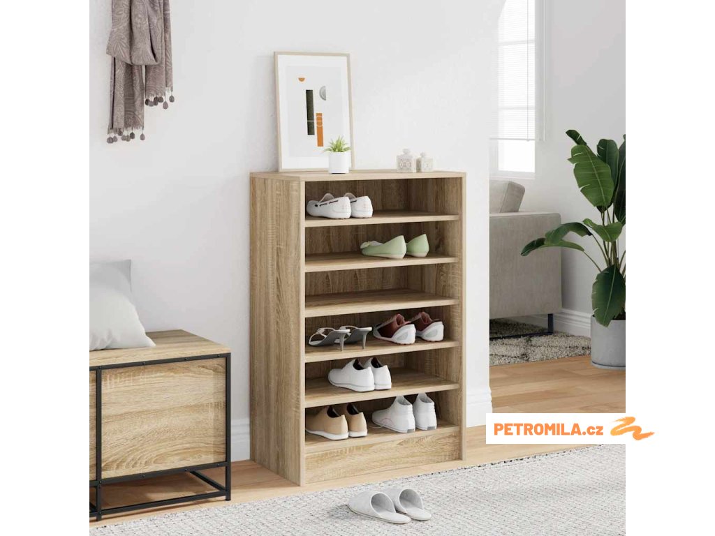 Botník je vyroben z kvalitního kompozitního dřeva, které mu dodává rafinovaný vzhled, stabilitu i odolnost. Je vybaven 7 policemi pro přehledné uložení bot a pantoflí. Tento organizér na boty se navíc snadno čistí vlhkým hadříkem.