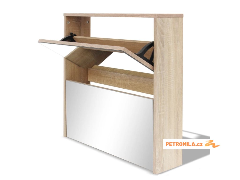 Botník dvoupatrový zrcadlo dub 63 x 17 x 67 cm