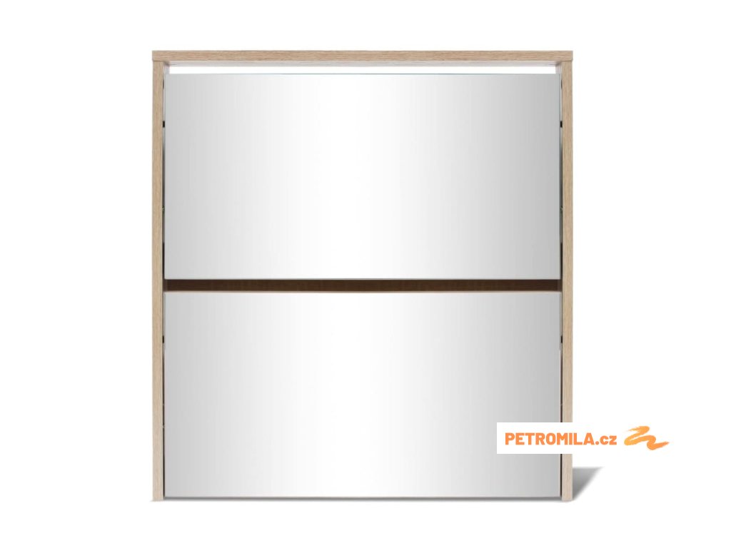 Tento zrcadlový botník má dvě vyklápěcí přihrádky, z nichž každá pojme 3 až 4 páry obuvi. Botník se montuje přímo na stěnu. Tato pevná a odolná předsíňová skříňka je vyrobena z vysoce kvalitního materiálu a je velmi praktickým kusem nábytku, kde můžete úhledně a stylově ukládat své boty, aby nebyly poházené po bytě.