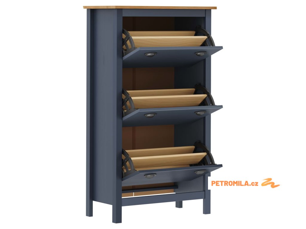 Tento organizér na boty je vyroben z masivního borového dřeva, takže je stabilní a odolný. Je navržen se 3 přihrádkami a 3 výklopnými dvířky pro snadný přístup.