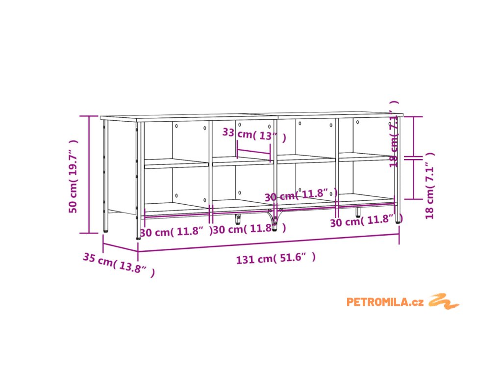 - Rozměry: 131 x 35 x 50 cm (Š x H x V)