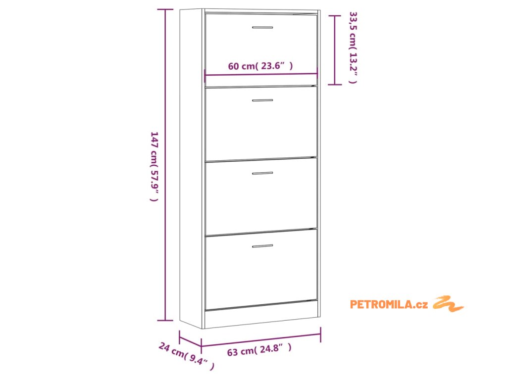 - Spousta úložného prostoru: Tento botník má 4 zásuvky, které poskytují dostatek prostoru pro přehledné uspořádání bot, kde je budete mít vždy po ruce.