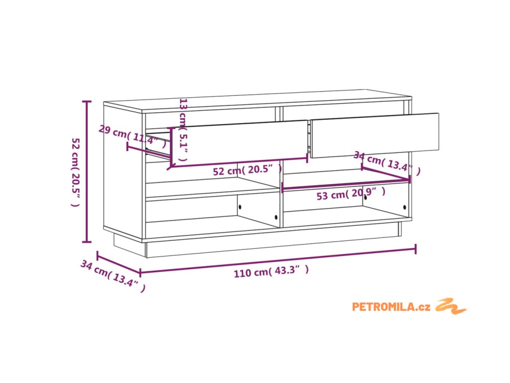 - Rozměry: 110 x 34 x 52 cm (Š x H x V)