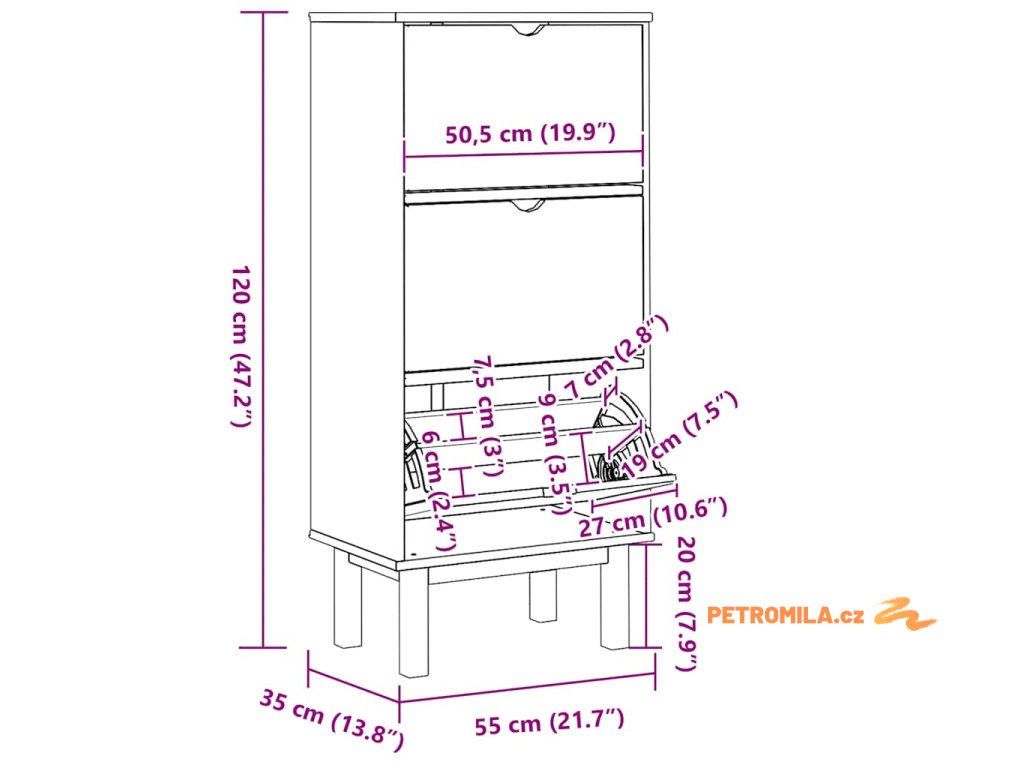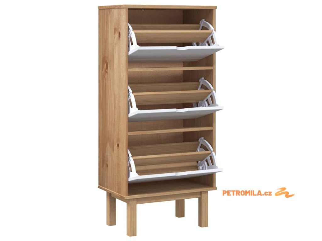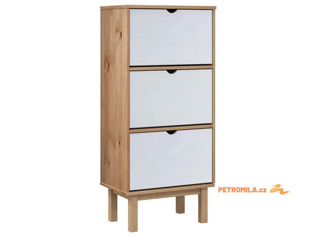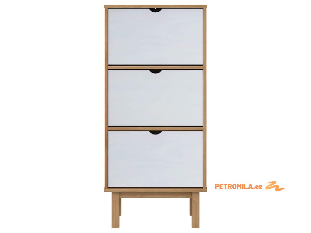 Botník OTTA se 3 zásuvkami hnědý a bílý masivní borové dřevo