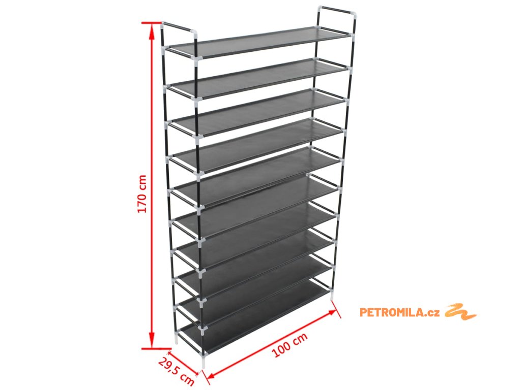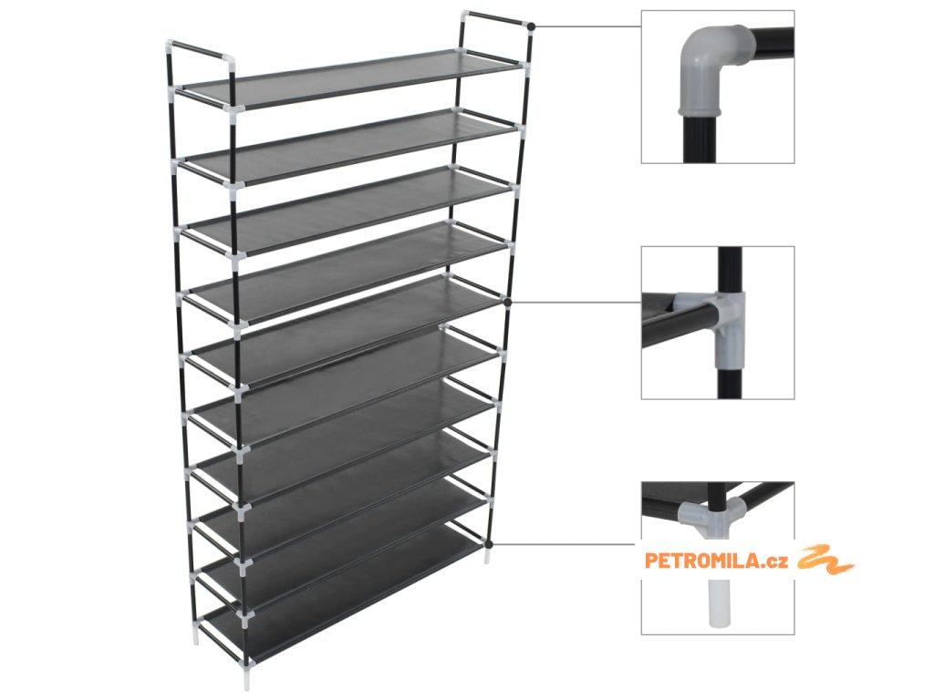 Má trubkový kovový rám, který je lehký, ale přitom robustní, lze jej tedy snadno přemisťovat a zároveň je i velmi stabilní. Má deset prostorných polic, vyrobených z netkané textilie, které vám poskytnou spoustu prostoru pro přehledné ukládání vašich bot tak, aby vám nepřekážely.