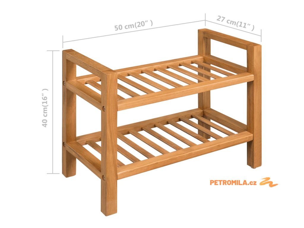 Botník s 2 policemi 50 x 27 x 40 cm masivní dubové dřevo